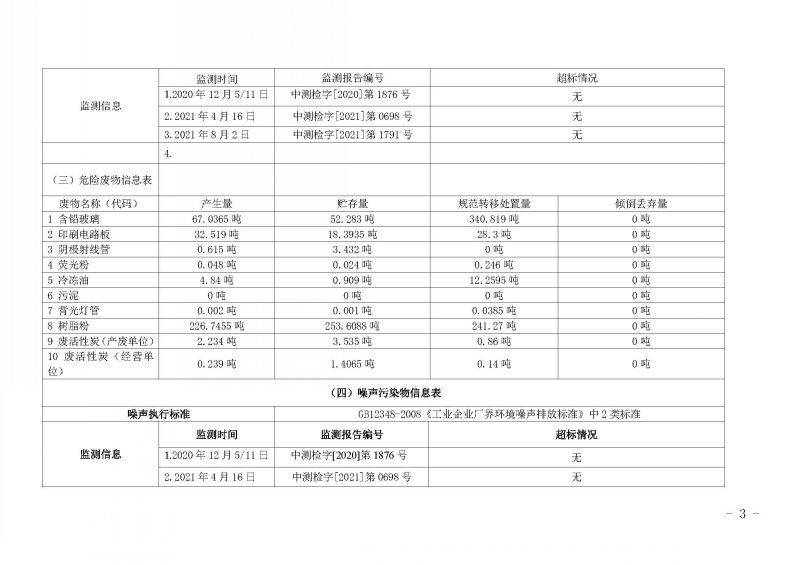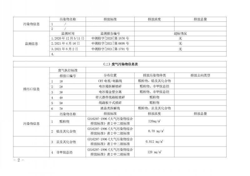 2021年第三季度环境信息公开表