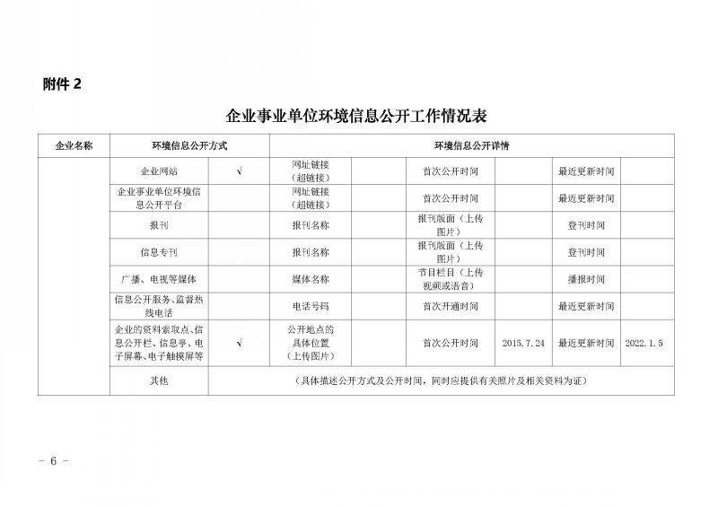 2022年第一季度环境信息公开表