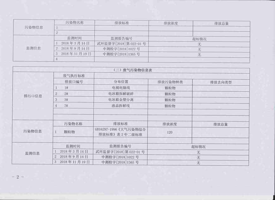 2018年第四季度环境信息公开