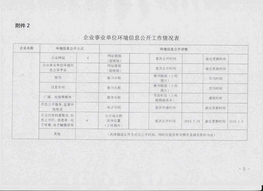 2018年第一季度环境信息公开